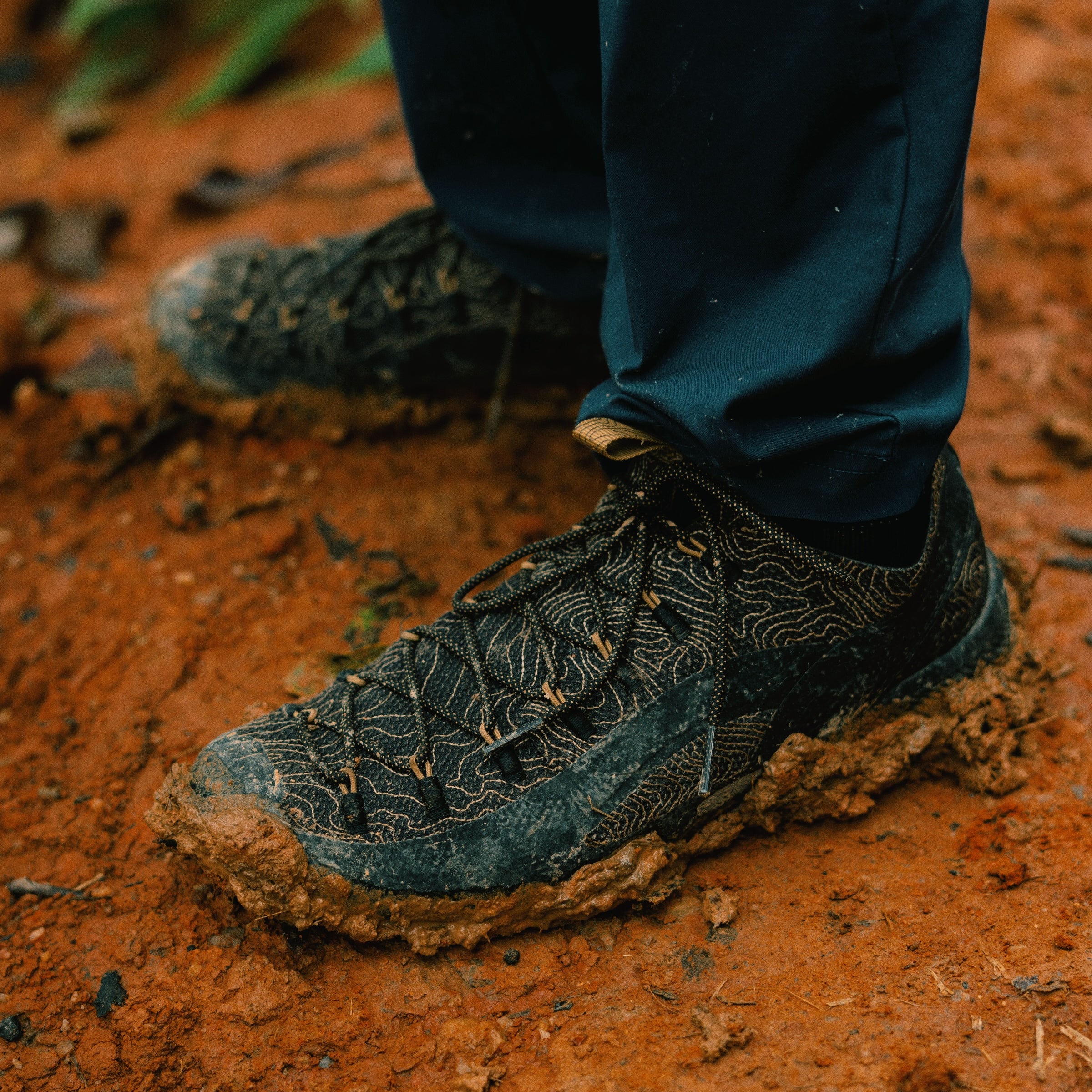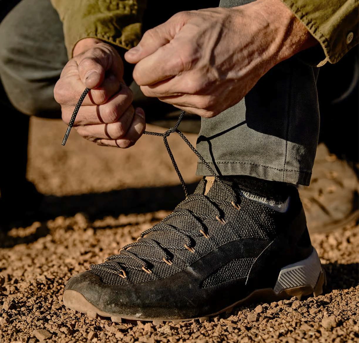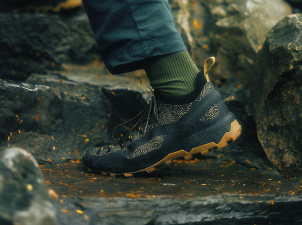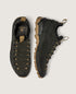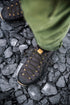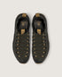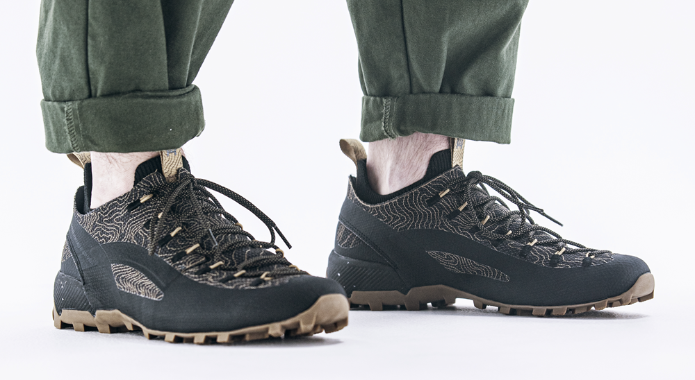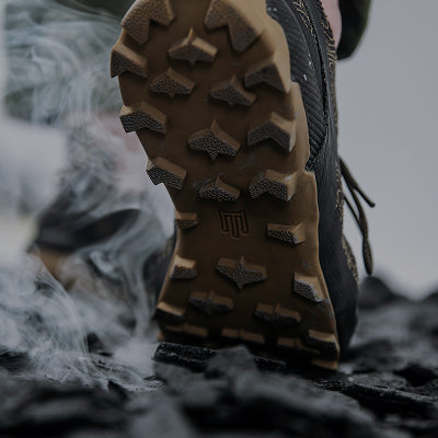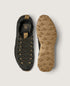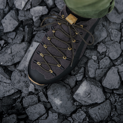 Fewer parts. Fewer seams. Less discontinuity. The structure wraps the foot, providing protection without stiffness and maintaining a direct connection to the ground. The upper is crafted from aramid fiber — the same family of materials used in bulletproof vests — designed to resist abrasion and prolonged wear without adding weight or bulk.